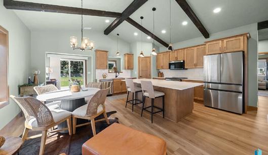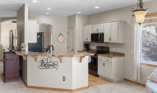 provide lawn care and snow removal. This slab-on-grade Villa, on a corner lot, features wonderful amenities including 3 panel doors, 9’ceilings enhanced with a custom hand-scraped Tuscan texture, custom closet organizers and tons of extra built-ins for storage. Inviting kitchen space with Showplace custom cabinetry including a sizeable pantry cabinet, slide outs in all 42 inch cabinets and finished with a tile backslash. LVP flooring throughout kitchen, dining, living, entry and hall. Oversized master suite with trayed ceiling, private bath with 5’ shower and linen cabinet plus a large walk-in closet that includes laundry. Spacious den off kitchen walks out to covered patio that opens up to a massive backyard with landscaping features. Nice sized office space between garage and kitchen with plenty of storage cabinets built in. Oversized 2-stall garage with plenty of extra storage cabinets and hot and cold water hookups. High efficiency Carrier furnace and central air unit.