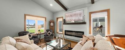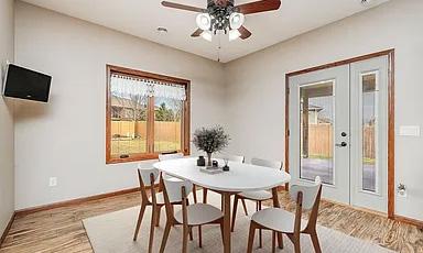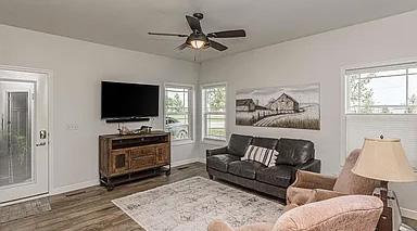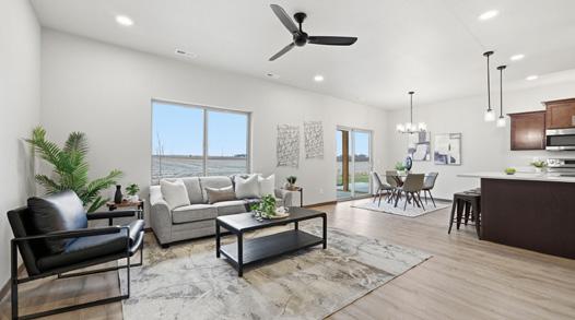into this beautifully crafted slab-on-grade ranch home built by Scott Gilbert Construction, offering quality, comfort, and thoughtful design throughout. The open-concept layout is enhanced by 9-foot ceilings and wide 3-foot interior doors, creating a spacious and accessible flow from room to room. This two-bedroom, two-bath home features a wellappointed primary suite complete with double vanities, a walk-in shower, and a generous walk-in closet. Convenience is at the forefront with main-floor laundry and an instant hot water heater paired with in-floor heat for year-round comfort. An impressive 8’ x 15’ storm room/storage room adds peace of mind and extra functionality. Outdoor living is easy with the 18’ x 15’ covered patio, perfect for relaxing or entertaining. The oversized triple garage provides ample space for vehicles, hobbies, and storage. A well-designed, low-maintenance home that blends practicality with modern comfort—ready to welcome its next owner.