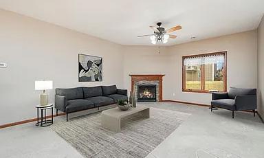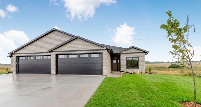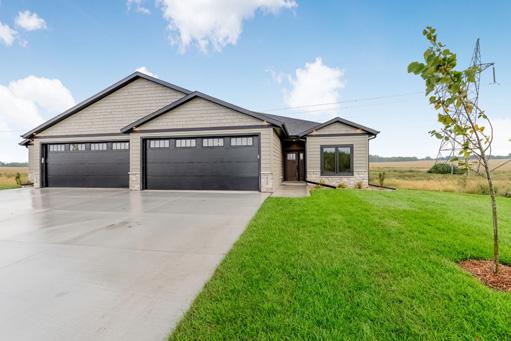 All photos are “similar to.” New Construction twin home on Hole #9 of The Lakes Golf Course near Lake Madison. 3 beds, 2 baths, and oversized, fully finished 2-stall garage. In-floor heat throughout the twin home including the garage. Primary suite is large with golf course views, a double vanity, large walk-in tiled shower with two heads and sizeable walk-in closet. The kitchen/dining and living room is an open concept with lots of natural light. Quartz tops throughout the twin home including the bathrooms and kitchen includes tiled backsplash. 6-foot island in kitchen with pendant lighting. Plenty of storage throughout with cabinets in the mudroom off the garage and in the laundry room along with closet organization in all closets. There is a slider off the dining room to a covered patio with great views of the hole number 9 fairway. Anderson windows throughout. LVP flooring everywhere except bedrooms. Cedar ceiling in entryway and ceiling on the covered patio. Lawn will be seeded and includes underground sprinkler and rock around the home. The HOA takes care of streetlights and includes a community park with a play system, sand volleyball, pickleball, a dock on Round Lake and a shelter for only $150 a year. The roads are maintained by a Road District for $600 a year that is assessed through property taxes. Still time to customize some finishes. Call Now!