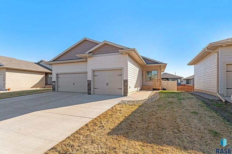 Introducing a stunning five-bed, three-bath ranch home located on the desirable west side of Sioux Falls. Built in 2022, this home flows with modern finishes and ample space that will make you love coming home each day. The main floor features a spacious open floor plan with a gourmet kitchen that includes a large island, new fixtures and stainless steel appliances. Enjoy dinners in the open dining room and time outside on the back deck that overlooks the fully fenced in backyard. To finish off the main, find 3 spacious bedrooms with walk-in closets including a well appointed primary suite where you’ll enjoy a private bath and extra large closet. Check out the 2nd full bath and convenient main floor laundry room before heading downstairs to find a grand family room with electric fireplace, a large 3rd bath, and 2 more garden level bedrooms.
