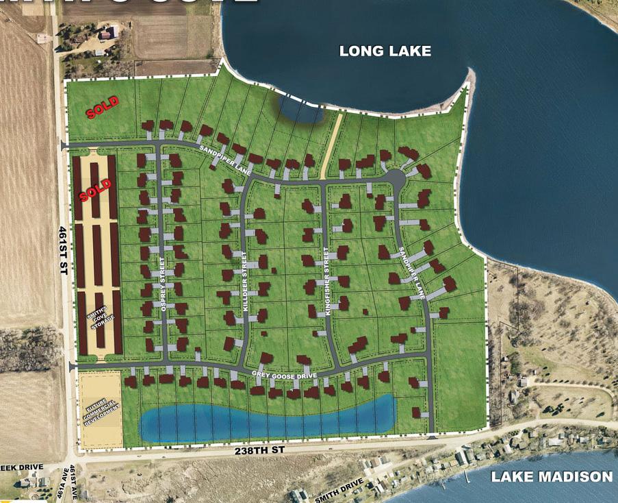Exciting new development nestled between Long Lake and Lake Madison in Lake County just 45 minutes from Sioux Falls. From flat lots to walkout lots. Lot sizes range from .59 acres to 2.28 acres. Lot prices range from $89,900 to $210,000. Hard surfaced roads right to your front door. Conveniently located near restaurants and 9-hole golf course. The city of Madison is just 10 minutes away. Utilities include rural water, sanitary sewer, natural gas and electricity. You can also choose your own builder. Architectural guidelines are in place. Members of LLC are licensed Real Estate Brokers in South Dakota. Listed by Randy Rozeboom, Broker Owner and Eric Johnson, Broker Associate with Harr & Lemme Real Estate, Inc. SOLD SOLD SOLD