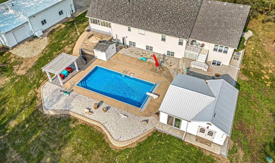 Unbelievable Views of Lake Madison and the rural countryside surrounding this gorgeous 3 acre setting!! With five bedrooms and three bathrooms and tons of living space, you’ll make yourself right at home here!! The acreage boasts a full shelter belt around three sides as well as many random trees throughout the property! Deer and other wildlife are abounding here as you watch out your gigantic picture window looking towards the lake or as you sit out on the huge wrap-around deck. A brand new 40 X 50 shed is in the process of being built and will be complete by closing. The basement features a large family room for all your family movie nights or recreation....your choice! Two additional small sheds can be purchased along with the sale. Only a mile away from the Lake Golf Course and the Lakes Restaurant as well as Broadwater Bar and Grill. Sioux Falls and Brookings are about 35 minutes and Madison is 10 minutes away. Come see this one-of-a-kind Acreage before it’s gone!!