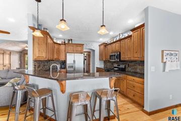 Experience the Best of Both Worlds in This Beautiful Home! Step into this remarkable residence that combines modern elegance with the charm of a well-established neighborhood in the heart of Sioux Falls. Situated conveniently near pools, parks, the zoo, bike trails, golf courses, shopping centers and downtown, this home offers a perfect location. The spacious white kitchen boasts a large island with quartz countertops, ideal for hosting gatherings, while the downstairs family room is equipped with surround sound and prewiring for a projector. Relax on the deck and in the backyard seating area surrounded by mature trees and wildflowers. Don’t let this exceptional opportunity pass you by!