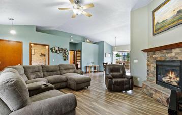 Three Bedroom, three bath home on East side of Sioux Falls that is a short golf cart ride to Willow Run Golf Course. As you enter the home you will appreciate the openness of the space between the kitchen, dining and living room with an abundance of natural light. The kitchen has granite tops, a nice sized island and hidden pantry. You can access the covered deck from the sliders in the dining room. Both the upstairs living room and basement family room have gas fireplaces to cozy up to as the seasons begin to change. The primary suite includes a double vanity, tiled 3/4 shower and walk in closet. A second bedroom and full bath finish out the main floor. Heading to the basement, you will enter a very large family room that is set up for a rec area and is plumbed to add a wet bar. The third bedroom and full bath is located in the basement. $225/month HOA fee includes lawn, sprinkler (and water), snow, garbage and exterior maintenance. 104 Silver Creek Dr., Wentworth, SD | $785,000