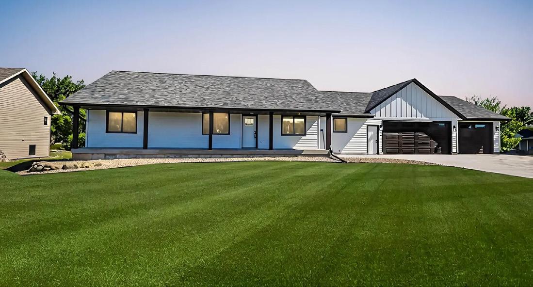 Perched on a hill, this shouse offers panoramic views of its four-acre property, located just 8 miles north of the I-90/I-29 interchange in Sioux Falls with easy paved road access. The 1,900 sq. ft. home features a 26x25 great room with east-to-west views, a gourmet kitchen, three bedrooms, a luxurious main bath, and a mudroom with ample storage. The entire slab is heated and includes an attached 30x30 garage. A standout feature is the 55x40 shop, which is in pristine condition with a fully concrete floor, 12foot insulated walls, and a 40x12 climate-controlled area for an office or hobby space. Read more on page 3!