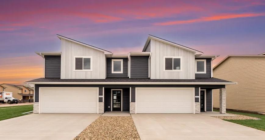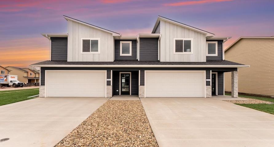 No payment until January 1st with purchase contract by 10/15/2023! Designer twin homes with upgraded fixtures/finishes and various design package choices. Only three minutes separate you from Sioux Falls off Minnesota Ave. with shopping, dining and entertainment right at your fingertips. An array of sleek finishes and a thoughtful layout. 1,711 sq. ft. twin home featuring 3 beds and two and a half baths that is a paradigm of contemporary living. The kitchen has quartz countertops and a large kitchen island - perfect for entertaining. Up the stairs, you will find the perfect work-from-home loft and a gorgeous, oversized master bedroom (19’ x 12’) which features a sizeable walk-in closet (8’ x 7’) and a stunning en-suite bathroom with a double vanity and walk-in shower. Additional features include Andersen windows, quartz counters throughout, lawn care, snow removal and a dog park within walking distance!