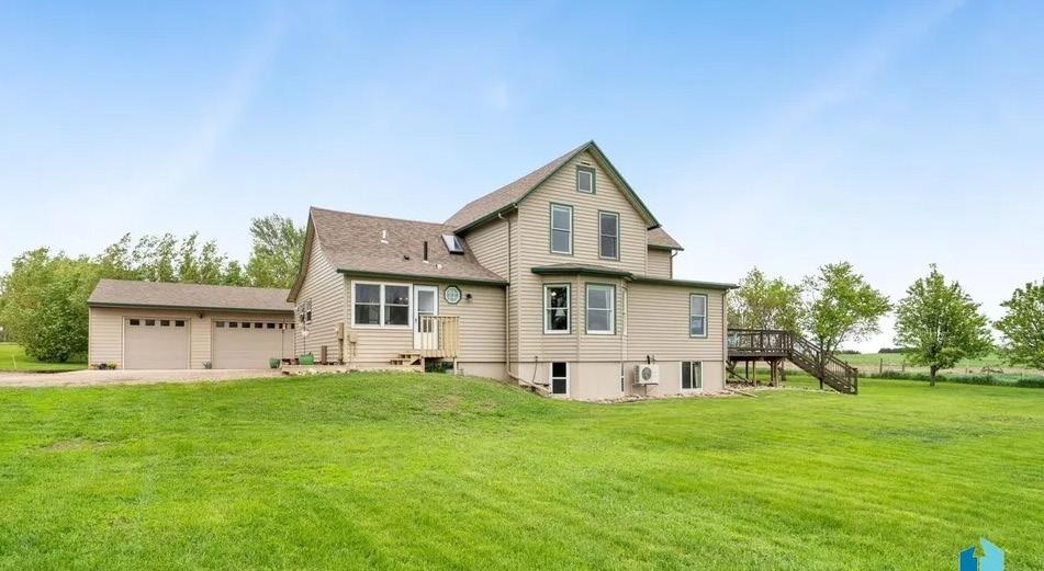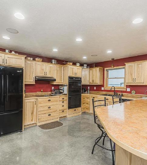and two baths with oversized two-stall detached garage that is heated. Home has 2,904 finished square feet. Property includes four outbuildings.