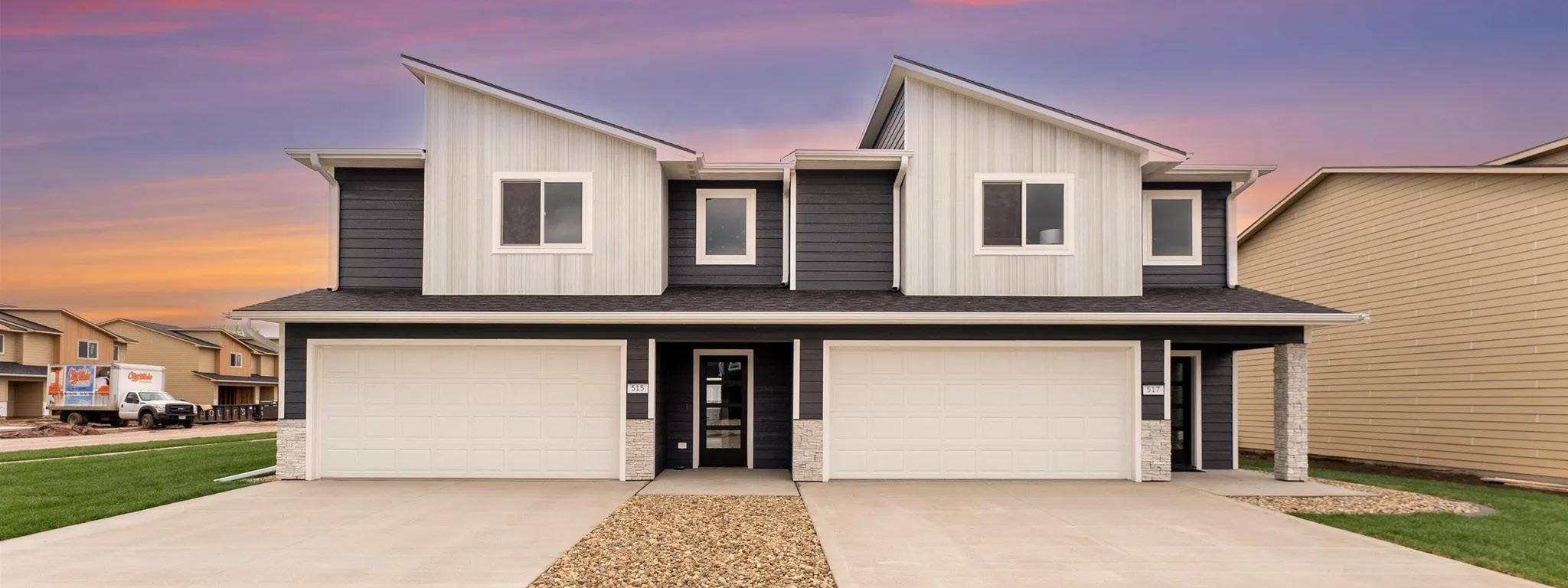Designer twin homes with upgraded fixtures/finishes and various design package choices located in Harrisburg. Only three minutes separate you from Sioux Falls off Minnesota Ave. with shopping, dining and entertainment right at your fingertips. An array of sleek finishes and a thoughtful layout. 1,711 sq.ft. twin home featuring three beds and two and a half baths that are a paradigm of contemporary living. Upstairs, you will find the perfect work-from-home loft and a gorgeous, oversized master bedroom which features a sizeable walk-in closet and a stunning en-suite bathroom with a double vanity and walk-in shower. Additional features include Andersen windows, quartz counters throughout. No payment until January 1st with purchase contract by 10/15/2023!