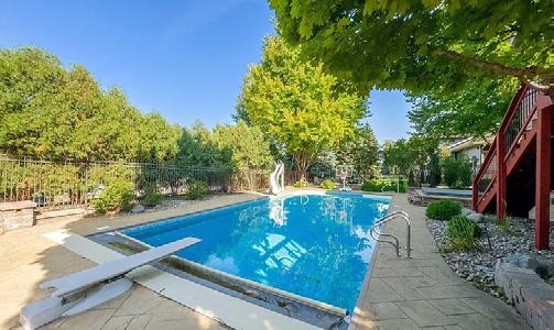 5 +/- acres with 4 beds 3 bath and 3 half bath updated home. Main floor includes large kitchen, living, dining, mud /laundry, master bedroom & huge family room! The kitchen boasts double ovens, huge peninsula, granite tops & tile backsplash! Karndean vinyl floors, vaulted ceilings & two electric fireplaces. Main bedroom has en-suite w/cherry cabinets with double sinks, a 5 x 7 tiled shower. Huge family room with wall of windows and soaring ceilings! The lower level has 9-foot ceilings, 3 additional bedrooms with garden view, a 3/4 bath, theater room with bar, tile floor and Bose system with projector. In-floor boiler heat in basement and a radon mitigation system. Anderson windows. The 30 x 40 heated shed includes epoxy floors, 3/4 bath with 18 wide x 11’ 6’’ high overhead door, and more! The backyard is an entertainer’s dream 18 x 36 swimming pool and 26 x 24 pool house with 1/2 bath and bar. Home & landscaping has been completely updated. Seller is licensed RE agent in SD.