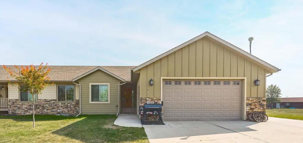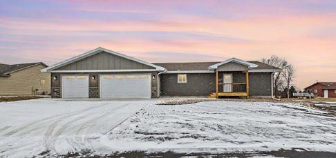 Westside new construction ranch twinhome located in a nestled secluded westside Sioux Falls neighborhood. This 2-bedroom, 2 bath offers an open floor plan design, 36 wide solid oak panel doors for easy access throughout, windows trimmed with wood all 4 sides. Living room has a tray ceiling, electric fireplace that flows into the kitchen/dining area and a slider to a concrete patio for entertaining/relaxation. Kitchen features quality Cardell cabinets with soft close, center-island and a beautiful stainless appliance package. Master bedroom has ceiling fan, huge walk-in closet, master bath with walk-in tile shower. Convenient main floor mudroom/ laundry area leads to a double car garage with hot/cold water, insulated walls, ceiling, garage door, sheet rocked, textured and painted. Landscaping includes, rock, edging and grass. All this on a one-level living (no steps) near city bike trail, close to schools, parks, shopping and medical.