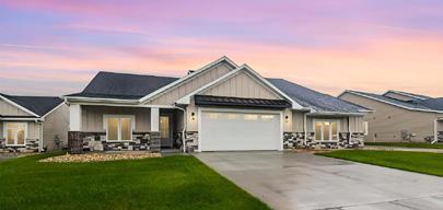 Southeast Sioux Falls slab-on-grade twin home with zero-entry on corner lot with no east side or backyard neighbors and includes a covered front patio. This home has recently updated interior paint and new exterior paint, newer flooring (LVP and carpet) and most mechanicals have been updated in the last few years. There is a completely finished oversized 3-stall heated garage with epoxy flooring and hot/cold water hookups. As you enter the home you will fall in love with the open concept, natural light and updated/upgraded amenities. The kitchen has quartz tops with new tile backsplash, gas stove, island, and two pantries. The living room has built-ins, gas fireplace with new tile surround and access to the third covered patio in the backyard with an extra, secure storage room. The entire home has speakers throughout for whole home audio. Security system is in place, but not activated. The lawn includes landscaping rock with underground sprinkler system. Extra storage in the attic above garage is accessible by a drop down door with ladder. Listing agent is related to seller.