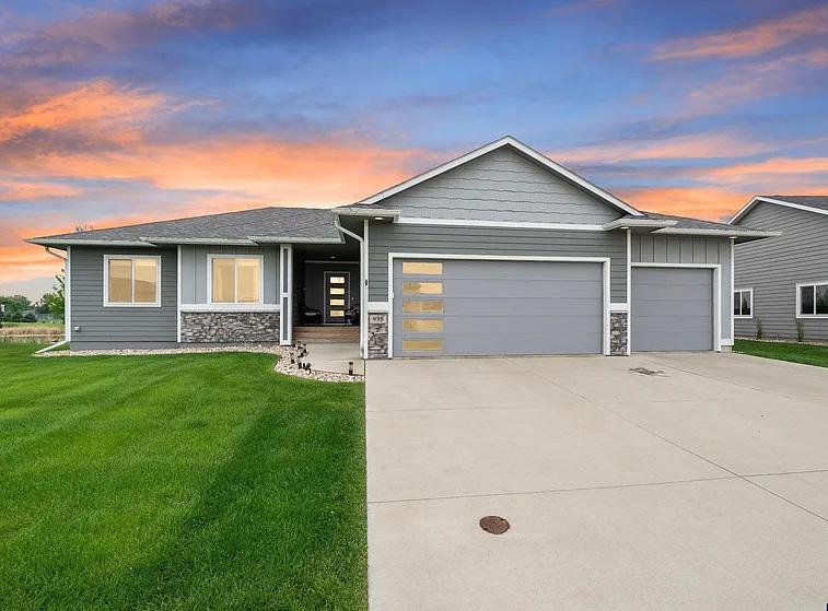 neighbors! It’s your own little slice of calm, right in the heart of Tea. This fully finished 5-bed, 3-bath home blends modern style with everyday function, offering an open layout, three main-level bedrooms, and a convenient drop zone with main floor laundry. The lower level features a spacious family room, two oversized bedrooms, a large storage room, and a flex space perfect for a home office, hobby room, or dream walk-in closet. A spacious three-stall garage offers plenty of room for vehicles and extra storage. The fully fenced yard and close proximity to parks, the pool, and schools make this one check all the boxes and then some.