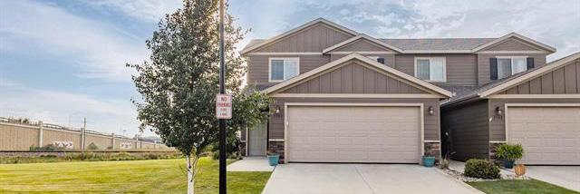 End unit slab-on-grade townhome with the largest yard in the development and no backyard neighbors! Open concept kitchen, dining andliving room area with a slider to a covered patio. Kitchen has plenty of cabinets with an island and pantry. Main floor half bath for guests.Second floor includes two sizeable bedrooms, a full bath and the primary suite has a walk in closet with pass through to bath. Laundry isupstairs conveniently located near both bedrooms and includes extra storage. Freshly painted two stall garage. HOA dues are $140 permonth and cover lawn, snow, garbage, road maintenance and community center with a large park.