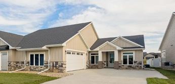 All photos are “similar to”. New Construction twin home on Hole #9 of The Lakes Golf Course near Lake Madison. 3 beds, 2 baths, and oversized, fully finished 2-stall garage. In-floor heat throughout the twin home including the garage. Primary suite is large with golf course views, a double vanity, large walk-in tiled shower with two heads and sizeable walk in closet. The kitchen/dining and living room is an open concept with lots of natural light. Quartz tops throughout the twin home including the bathrooms and kitchen includes tiled backsplash. 6 foot island in kitchen with pendant lighting. Plenty of storage throughout with cabinets in the mudroom off the garage and in the laundry room along with closet organization in all closets. There is a slider off the dining room to a covered patio with great views of the hole number 9 fairway. Anderson windows throughout. LVP flooring everywhere except bedrooms. Cedar ceiling in entryway and ceiling on the covered patio. Lawn will be seeded and includes underground sprinkler and rock around the home. The HOA takes care of streetlights and includes a community park with a play system, sand volleyball, pickleball, a dock on Round Lake and a shelter for only $150 a year. The roads are maintained by a Road District for $600 a year that is assessed through property taxes. Still time to customize some finishes. Call Now!
