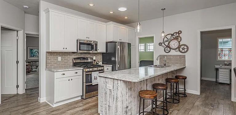 This classy dramatic slab-on-ranch is stunning. It’ll have you wanting to see more the second you enter the front door. It boast the latest in flooring, cabinets, the latest in light fixtures, colors, and stunning window treatments. This home offers 2 bedrooms, 2 full baths, office, a 4 season sunroom, beautiful backsplash, wood beams, fireplace, extra concrete slab added on the driveway, epoxy on garage floor, gorgeous window coverings, cabinets added in laundry room, all of this added after closing price of home. This home offers a huge yard for garden, and play area. When it’s your property, use your imagination! Don’t miss out on this gorgeous home.