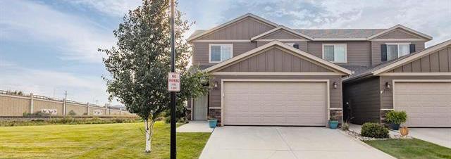 End unit slab-on-grade townhome with the largest yard in the development and no backyard neighbors! Open concept kitchen, dining and living room area with a slider to a covered patio. Kitchen has plenty of cabinets with an island and pantry. Main floor half bath for guests.Second floor includes two sizeable bedrooms, a full bath and the primary suite has a walk in closet with pass through to bath. Laundry is upstairs conveniently located near both bedrooms and includes extra storage. Freshly painted two stall garage. HOA dues are $140 permonth and cover lawn, snow, garbage, road maintenance and community center with a large park.