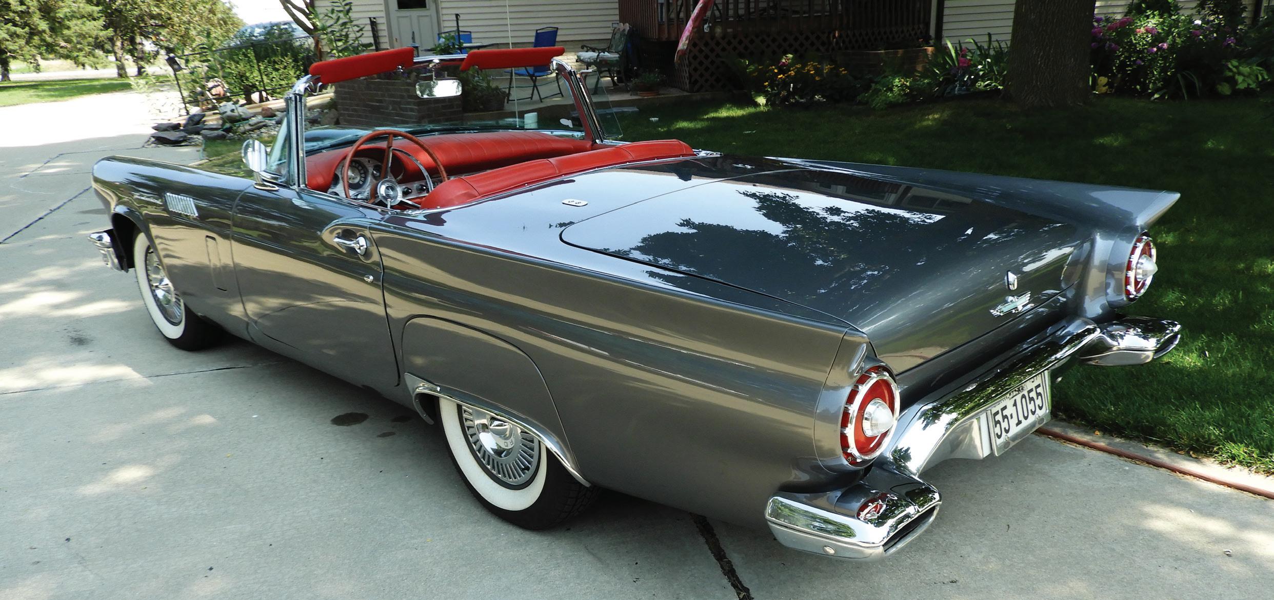Even though Elizabeth had a pretty good follow through with maintaining the Thunderbird over the 38 years she had it, Bob has probably spent the last ten years restoring the car to get it back to its original greatness. He had the engine rebuilt by Scott Sehr Performance Machine in Sioux Falls and had the body with all its layers of paint stripped to the bare metal and redone completely body wise and paint done by Z Image in Canistota. Bob had Schulte Subaru install a new convertible cover, and also bought a 1957 port hole hardtop out of Illinois so he has both tops. Bob said he is kind of perplexed thinking if King Vidor was making so much money with making movies, why he didn’t get a “T Bird that was loaded with options, but at the same time Bob is still proud to be the third owner of a car that was owned by a very influential person in America for so many years who made his mark in history with movie making!!