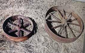 NOTE: Many vintage farm related items which include steel wheels, plows, rakes, drills, manure spreader, disks, tractors, implement seats, early 40’ Austin Motor road grader, pump jacks, 1920’s threshing machines, tumble bug, slip, fresno and more. Over 350 lots.