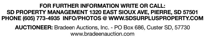 This is a LIVE Public Auction, held at the Bradeen Auction facility in Custer SD. Online simulcast bidding and pre-bidding is available to pre-registered bidders only, if you need/desire to bid remotely. Call for details.