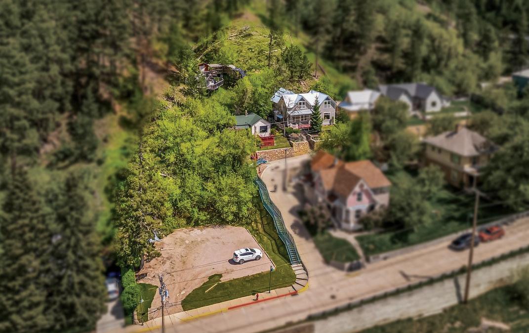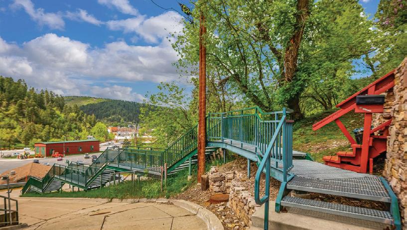 The sturdy stairway that leads from the bare residential lot currently used for parking, up to the two homes. Very