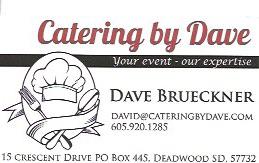 Many wonderful Menu Choices like: Roast beef, tender as a Mother's love, Delectable French Chicken, Pampered Prime Rib. slow-cooked and seasoned with Dave's amazing Heifer Dust, DAVE'S FAMOUS TAVERN CARROT CAKE! All cooked with the best, most healthful ingredients & family style love Special diets can be accommodated CALL 605 920-1285