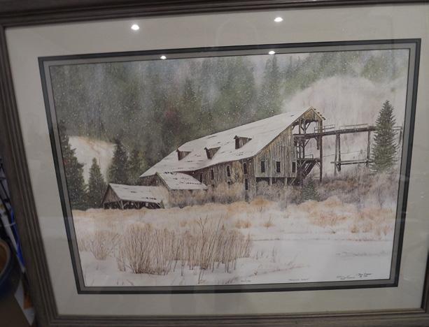 ARTWORK: Original Watercolor Framed & Matted Arthur Armstong “ Keeper of The Crystals “ 41” x 32” – Paid 4900.00, 1991 Framed and Matted, Signed & Numbered Cat Dueter Print # 102/300 24” x 26”, 1989 Framed Milo Le Beau Artwork, Framed and Matted 36” x 27” 1994 Bill Jaxon Buffalo Print, Framed and Matted Limited Edition Print #403/950, Framed and Matted Alfred Miller Print “ Buffalo Hunt 43” x 32”, Framed and Matted Claire Goldrick Print 28” x 33”, Framed and Matted – Signed and Numbered 15511/40192 Bev Doolittle Print “ Sacred Circle “, Framed and Matted Signed and Numbered Howard Terpning Print #793/ 1000 “ Prairie Knights “, Framed and Matted Signed and Numbered 51/250 Cat Dueter Print, Framed and Matted Signed and Numbered 553/950 Jon Crane Print “ Falling Giant 36” x 29”, Framed and Matted Jon Crane Print “ Stavekirke Church” 19” x 23”. Several other smaller Jon Crane Prints, Other miscellaneous art pieces.