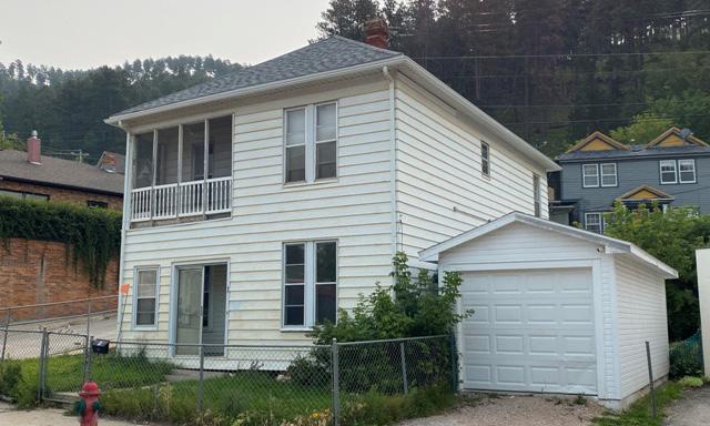 sale, a white two-story duplex at the corner of Sherman, Harrison and Charles Street in Deadwood, across from the Deadwood City “South Lot” parking area. Currently arranged as two apartments, each with a spacious kitchen with ample storage, large living and bonus rooms, one bath, and one bedroom that could function as two. Both units have separate entrances, level parking, and individual washer/dryer hookups. Excellent location within walking or biking distance to work and downtown Deadwood.