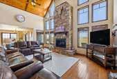 Downstairs, find another bedroom and bath, a bonus room, two inviting gathering spaces, and a cozy wood burner. Step out to the cement patio or access the 3-car garage, which connects through a large entryway and mechanical room.