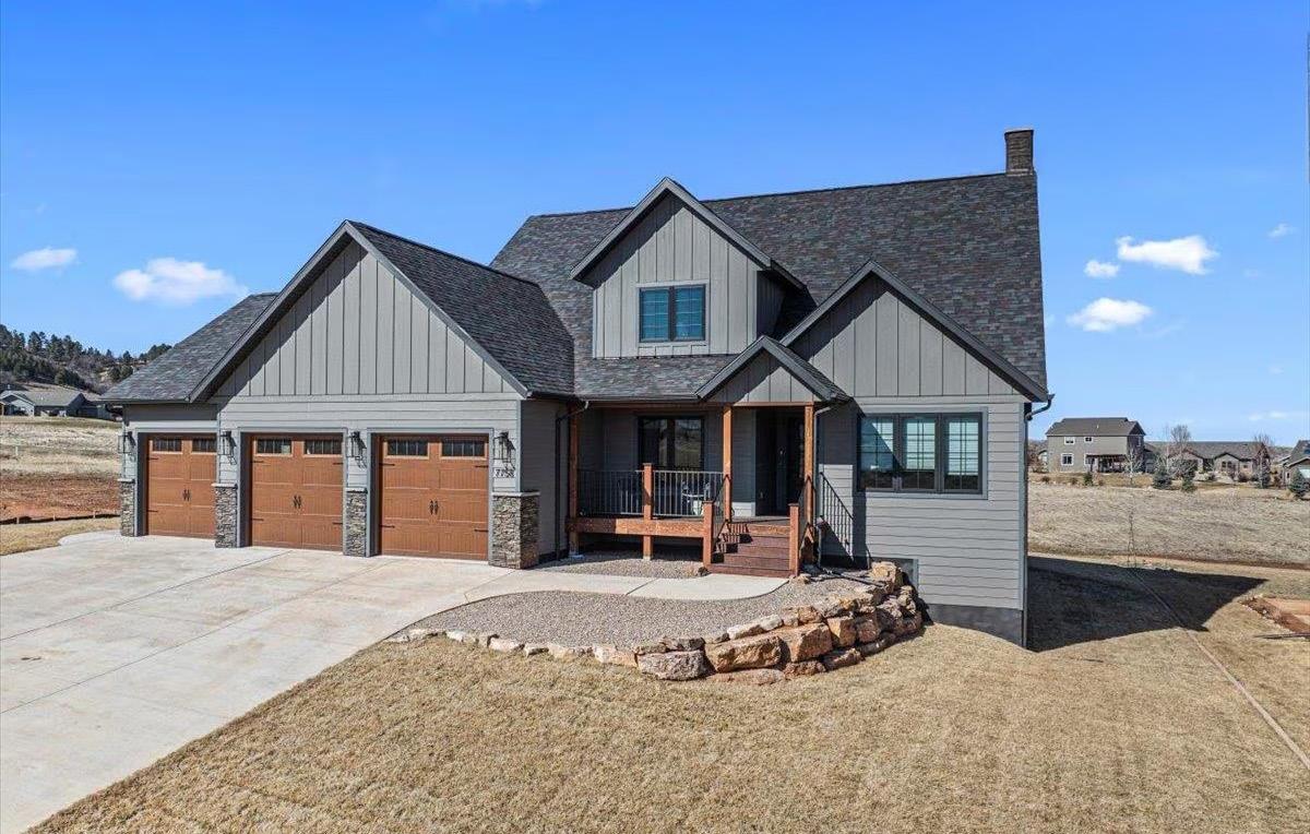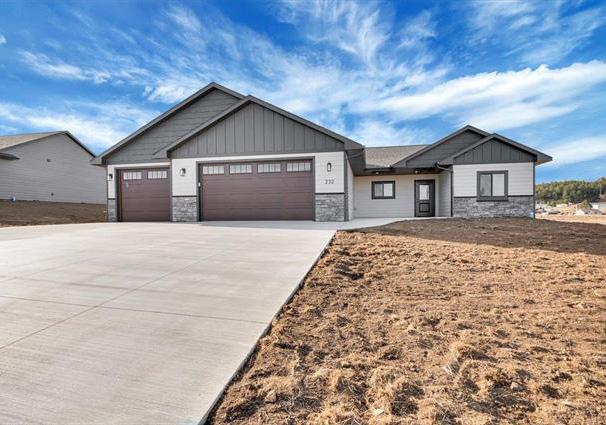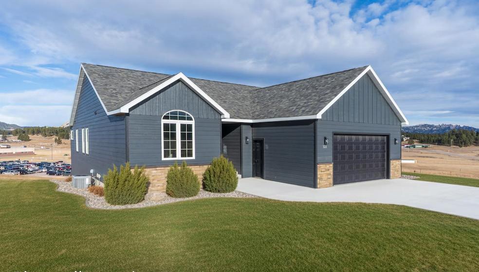 This sparkling new construction walkout ranch is packed with upgrades and sits on just under an acre in the desirable Stone Hill subdivision, surrounded by beautiful Black Hills views. The spacious main level features a gourmet kitchen with quartz countertops, stainless steel appliances, soft-close cabinetry, 9-ft ceilings, and a sunlit dining area that opens to a large covered deck. LVP flooring flows throughout, including the expansive living room with a cozy gas fireplace, built-in mantel, and soaring 11-ft ceiling. The primary suite offers a tray ceiling, tiled walk-in shower, soaker tub, double vanity, and walk-in closet, while two additional bedrooms and a full bath complete the main level. The unfinished walkout basement provides endless potential and opens to a covered patio. Extras include a 2-stall attached garage, on-demand hot water, and central AC. Located minutes from Custer schools, town amenities, and endless Black Hills adventures, this exceptional home is ready to be enjoyed without the hassle of building.