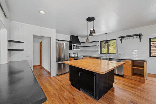 Enjoy the perfect blend of rustic charm and everyday comfort on this 1.22-acre fenced property surrounded by mature Aspen and Black Hills spruce, located right on the Mickelson Trail. Inside, the updated kitchen features all new appliances, a butler’s pantry, and a convenient laundry and utility area. Warm living and dining spaces offer new flooring, knotty pine walls, built-in bookcases, a wood stove, and ample storage. The main level includes three bedrooms, an open office area, and access to an unfinished basement for storage. Upstairs, a large open space with new windows offers flexibility for guests or hobbies. Outdoors, relax or entertain on the covered patio surrounded by vibrant flowers. The oversized two-car garage includes a workshop, she-shed, weight room, and extra storage space. No covenants and possible AirBnB use make this property even more appealing.