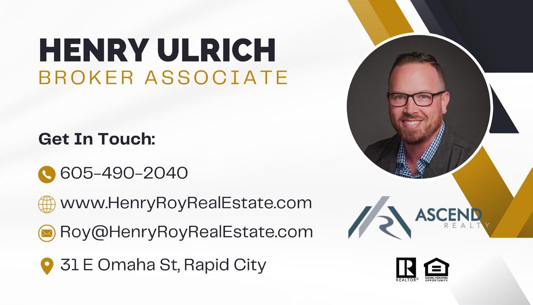 Real Estate Guide, formerly RE605 Magazine, is a monthly magazine featuring properties for sale by members of Black Hills Board of REALTORS®, Inc. All information contained herein is obtained from the Multiple Listing Service and related sources. Real Estate Guide is not responsible for any errors contained in the data set forth in this publication. Real Estate Guide makes no representations or warranties, expressed or implied, as to any properties listed in this advertising publication. Any reader interested in any property displayed herein should contact a licensed REALTOR® for verification of all information pertaining to any listing and should in all events exercise independent due diligence prior to purchasing any property or business described herein. All information regarding any listing advertised herein is subject to immediate change without notice. Any advertising contained herein by providers of goods and services of interest to property owners and potential property owners contains material and information supplied solely by the advertiser and Real Estate Guide is not responsible for the contents of any ads.