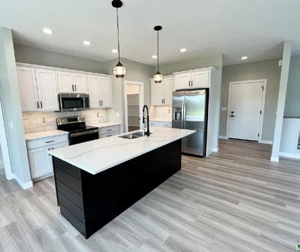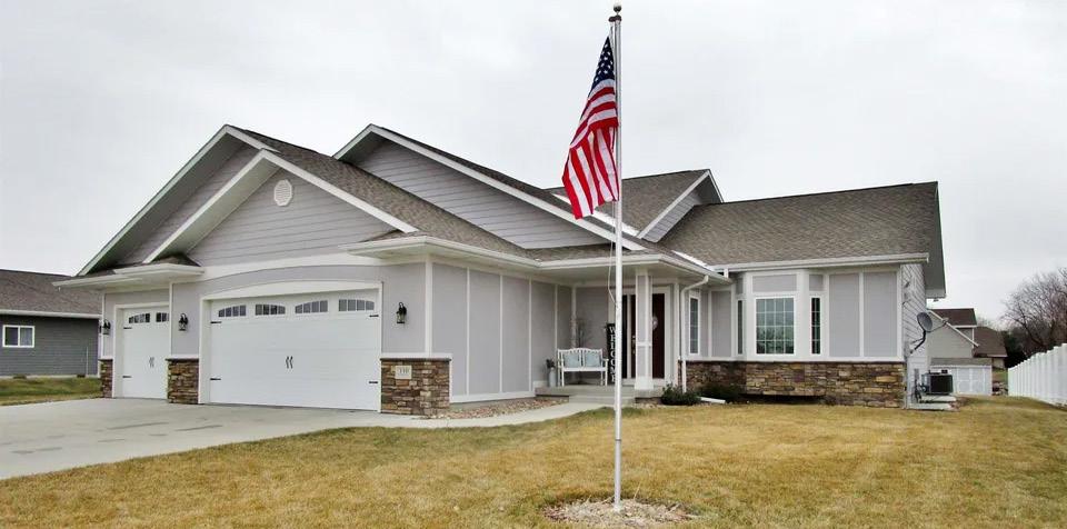 This stunning 4-bedroom, 3-bathroom ranch-style home is nestled on the 4th hole of The Pointe Country Club Golf Course in Elk Point, SD. Imagine teeing off just steps away, then relaxing on your spacious deck with shade all day long, perfect for post-round gatherings.