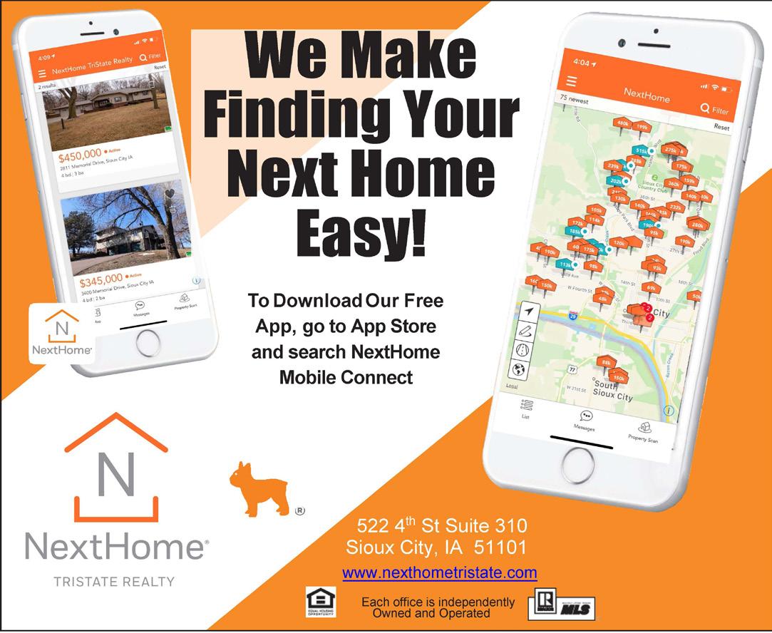 Virtual tours are available on many of our listings at www.NextHomeTriState.com JANEL PEARSON 712-552-7102 VICKI KOLLBAUM 712-251-0951 DAWN CONOVER 402-494-5137 KATIE SLATER 712-320-0887 SHELLY GLISSMAN 712-224-6398 DUSTER HOFFMAN 712-281-8704 RANDY KITTLER 712-281-2310 KIMBERLY DEKKERS 605-610-5138 (712) 224-NEXT 600 4th Street, Suite 231 Sioux City, IA 51101 EACH OFFICE IS INDEPENDENTLY OWNED AND OPERATED KARLA HERTZ 712-251-6861 JESS CROSS 712-899-2549 600 4th Street, Suite 231, Sioux City, IA 51101 HANNAH SWANSON 712-635-0884 1986 410TH ST. HAWARDEN, IA 4 BD, 2 BATH, $325,000 KIMBERLY DEKKERS 1111 STARVIEW DR. HINTON, IA COMMERCIAL, $359,900 RANDY KITTLER DUSTER HOFFMAN NEW PRICE 4337-39 FILLMORE ST. SIOUX CITY, IA MULTI-UNIT, $218,000 RANDY KITTLER DUSTER HOFFMAN NEW PRICE 111 N. MAIN ST. WAUBAY, SD COMMERCIAL, $52,900 DUSTER HOFFMAN 703 6TH ST. ONAWA, IA 2 BD, 1 BATH, $109,000 DUSTER HOFFMAN NEW PRICE 3318 230TH ST. ANTHON, IA 3 BD, 2 BATH $315,000 VICKI KOLLBAUM CORRECTIONVILLE RD LOTS LAWTON, IA 3 PARCELS/$200,000 EACH VICKI KOLLBAUM 48373 CONNOR RD. JEFFERSON, SD 4 BD, 3 BATH, $395,000 DUSTER HOFFMAN NEW PRICE 2551 NICKLAUS BLVD. SIOUX CITY, IA 8,276 SQ. FT. LOT, $38,500 DAWN CONOVER 540 DAVIS BLVD. AKRON, IA 4 BD, 3 BATH $416,395 JANEL PEARSON 301 N. 8TH ST. AKRON, IA 3 BD, 2.5 BATH $285,000 JANEL PEARSON 2726 W. COTTAGE AVE. SIOUX CITY, IA 3 BD, 1 BATH $185,000 DUSTER HOFFMAN 481 TITAN RD. HINTON, IA 4 BD, 3.5 BATH, $425,000 JANEL PEARSON KATIE SLATER 651 HARDY ST. AKRON, IA 2 BD, 1 BATH, $105,000 JANEL PEARSON 1701 SUMMIT ST. SIOUX CITY, IA 4 BD, 3 BATH, $180,000 DUSTER HOFFMAN 3013 KENSINGTON CT. SIOUX CITY, IA 4 BD, 2 BATH $250,000 VICKI KOLLBAUM NEW PRICE 14003 160TH ST. AKRON, IA 3 BD, 1.5+ BATH, $299,586 JANEL PEARSON NEW PRICE 202 S. SODRAC DR. #106 NORTH SIOUX CITY, SD STORAGE $155,000 DUSTER HOFFMAN NEW LISTING 2351 220TH ST. BRONSON, IA 4 BD, 2 BATH, $245,000 DUSTER HOFFMAN NEW LISTING