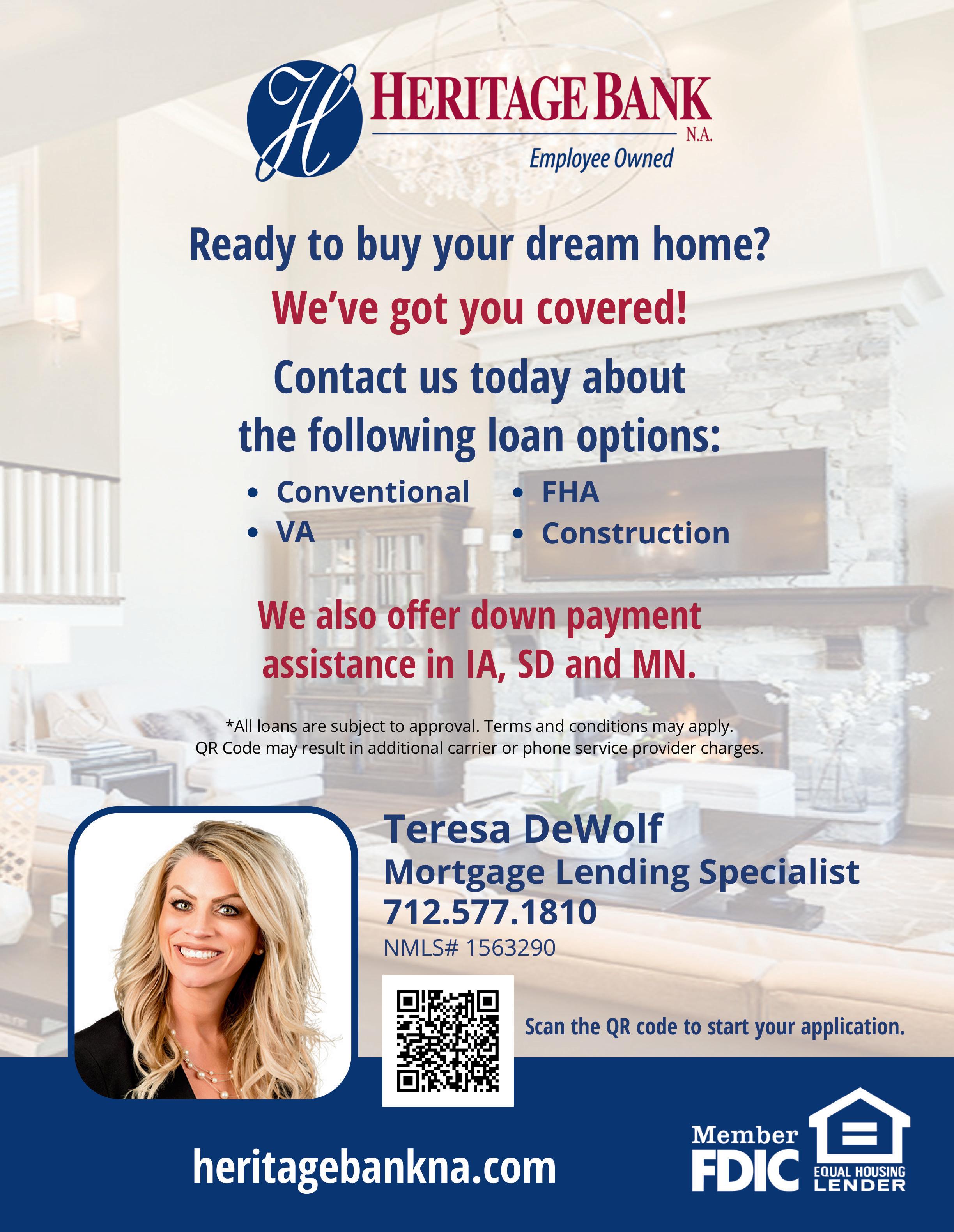 Visit us at availa.bank. AMES / ANKENY / CARROLL / COON RAPIDS COUNCIL BLUFFS / FORT DODGE / HOLSTEIN / JEWELL NEVADA / POCAHONTAS / SIOUX CITY / WEBSTER CITY SIOUX CITY 1380 Hamilton Blvd. Sioux City, IA 51103 712.255.1012 TERRY MULDER Vice President Mortgage Loan Officer NMLS #442575