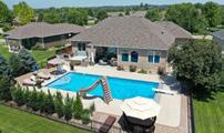 Magnificent views & conveniently located. Custom built 4,682 sq. ft. ranch with 4 bedrooms, 4.5 baths, and 962 sq. ft. oversized 3-stall garage. 2025 roof, 20’x32’ in-ground, heated pool.