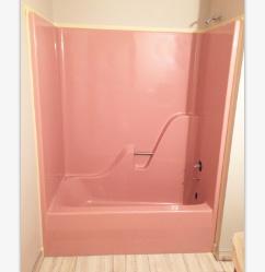 Installs on existing bathtub: fiberglass, acrylic, steel, or cast iron