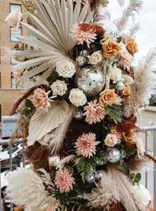 A distinctive feature was the couple’s dog Harry, who walked down the aisle in a blingy chain and tiny tuxedo. “He sat perfectly still, and the picture of our family on the bridge with Harry is so adorable,” Sharon reminisces.