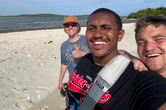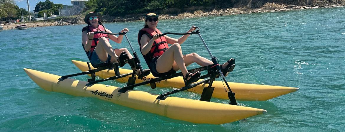 Above: 1 - Students at Camp Davis. 2 - Students enjoying the carbonate sedimentary fringes of the island of Puerto Rico. 3 - Students on the 2025 Grand Canyon field trip with professor Jamie Gleasson. 4 - Graduate students attending the 2025 Dorr Dinner awards in March. 5 - Members of GeoClub participating in a week-long scavenger hunt competition around Ann Arbor. 6 - Students hiking up a path behind Camp Davis to get a bird’s-eye view of Camp and the surrounding area. 7 - GeoClub members enjoying the spring banquet.