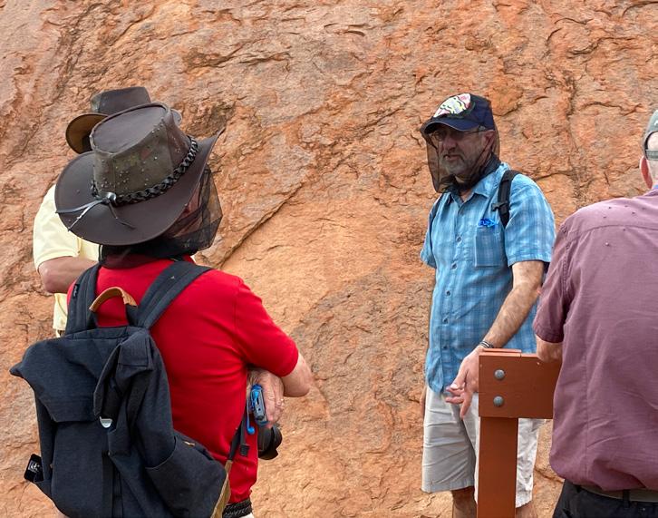 Above: 1 - Matthew Jones. 2 - Matthew during a USGS site visit in southwestern Iceland where CO2 is being injected for mineral-based storage in basalts through a process called CO2 mineralization. 3 - Matthew examining the Columbia River Basalt Group for geologic CO2 sequestration potential in 2024 as part of his role with the USGS. 4 - Matthew at the Gulf Coast Repository in College Station, TX, which stores 50 years worth of sediment cores recovered from scientific ocean drilling. Opposite page: 1 - Rebecca doing fieldwork in Wyoming. 2 - Rebecca Dzombak. 3 - Matthew at Badwater Basin in Death Valley, CA. 4 - Matthew getting a closer look in the field.