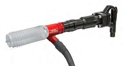 903-VDEX is designed to easily attach to 903 triple piston scabblers using the factory live handle and pipe assemblies. The bristled skirt surrounds the piston to contain dust and debris, allowing the vacuum to draw the dust away from the work area.