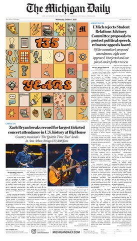 BUSINESS STAFF Madeline Lacey University Accounts Manager Ailie Steir Classified Manager Simonne Kapadia Local Accounts Manager Lotus An National Accounts Manager Olivia Jones Production Managers Nolan Loh Special Projects Coordinator Jason Anterasian Finance Manager The Michigan Daily (ISSN 0745-967) is published Monday through Friday during the fall and winter terms by students at the University of Michigan. One copy is available free of charge to all readers. Additional copies may be picked up at the Daily’s office for $2. Subscriptions for fall term, starting in September, via U.S. mail are $110. Winter term (January through April) is $115, yearlong (September through April) is $195. University affiliates are subject to a reduced subscription rate. On-campus subscriptions for fall term are $35. Subscriptions must be prepaid. The Michigan Daily is a member of The Associated Press and The Associated Collegiate Press.