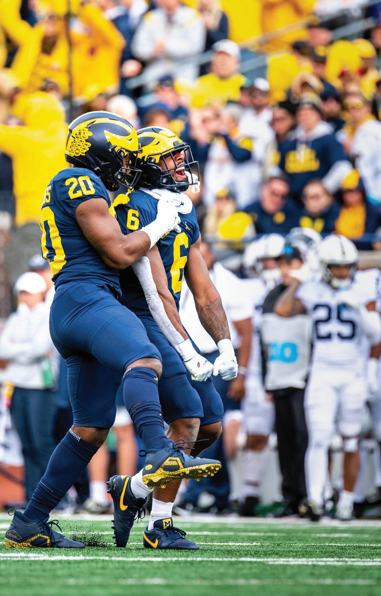 Things got chippy in the tun nel, with both teams shoving and engaging in the skirmish. What had transpired on the field in the previous 30 minutes didn’t fit that narrative. The Wol verines handled the Nittany Lions for the most part, outgaining them heavily in yardage and, astonish ingly, holding them to just one first down despite only leading 16-14.