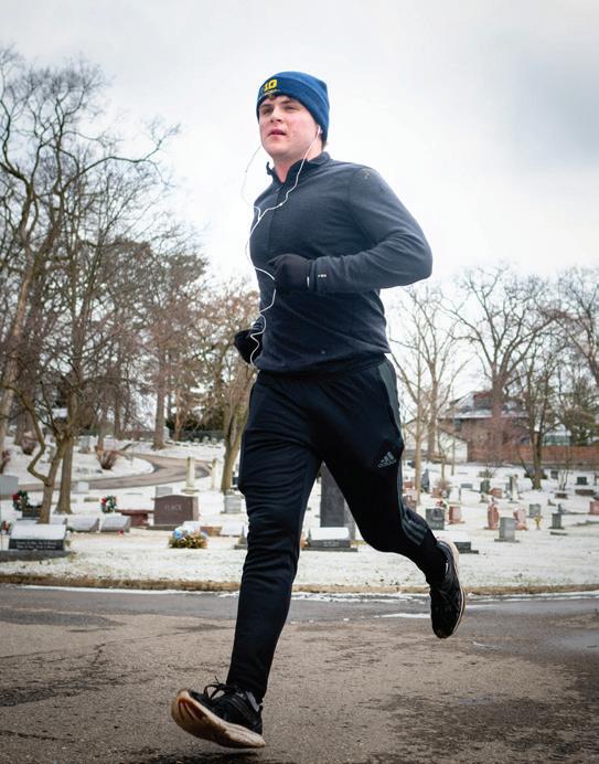 Charlie Pappalardo jogs through the Forest Hill Cemetery and Law Quad Friday, February 17.