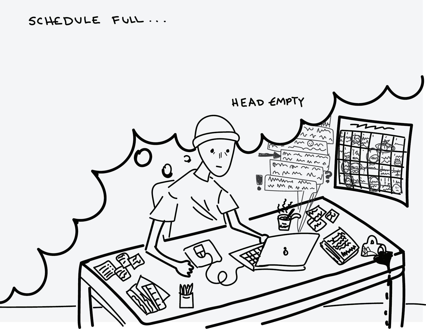Through the fervor of selfimprovement culture, I’m promised that meaning in the world is simple, with my path to enlightenment tied to its methodology and morning routines. When I have streams of passive income and fully optimized schedules, I will be fulfilled. Method books and Medium articles, then, become its scripture – “Save 20 Hours a Week By Removing These 4 Useless Things In Your Life” or “19 Rules for a Better Life (from Marcus Aurelius)” or anything that takes that sense of worthlessness away from yourself or our uncaring world and into your habits, into those things that you have control over and can change. I don’t know how true this dogma is, but I do know it’s deeply comforting to me; maybe to do otherwise is to surrender control and face the abyss.