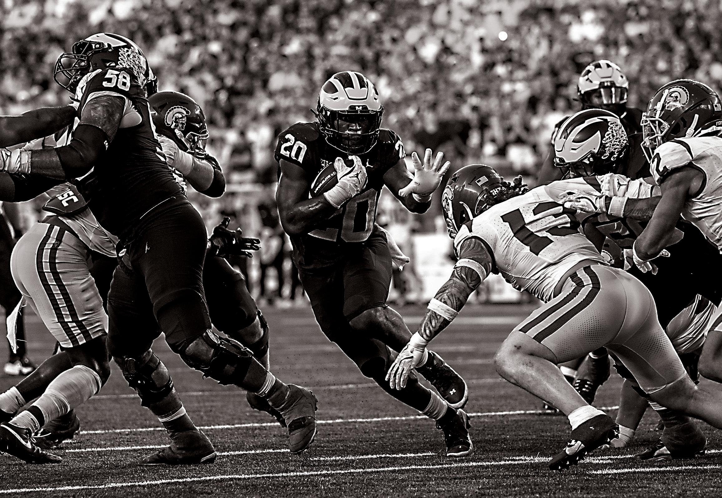 Mullings was the undisputable star of the Wolverines’ offense on Saturday. He rushed for 159 yards and two touchdowns, averaging 9.4 yards per carry. The Trojans knew Mullings was going to run the ball,