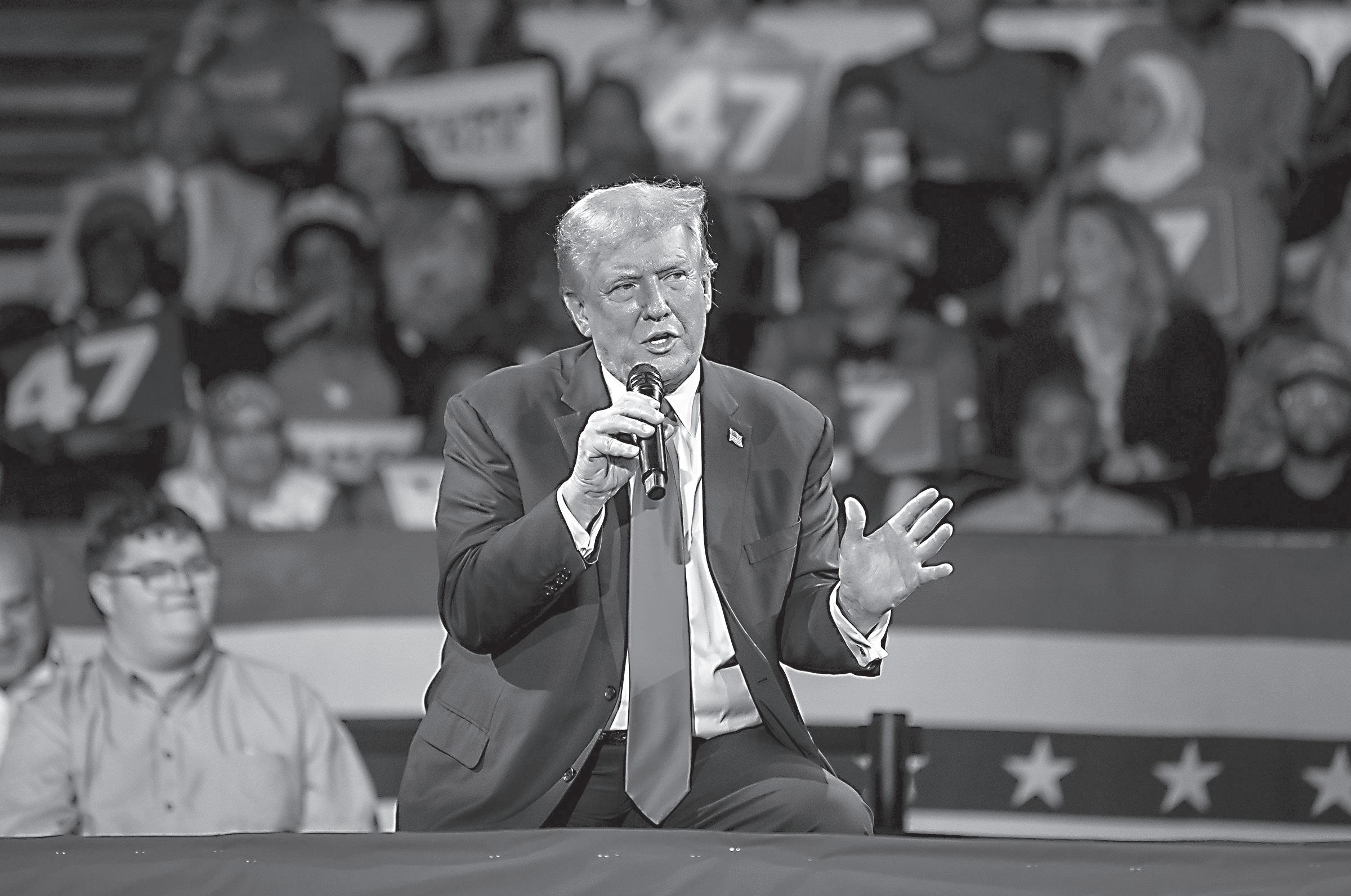 Republican presidential candidate Donald Trump traveled to Flint Tuesday evening for a town hall event moderated by Arkansas Gov. Sarah Huckabee Sanders. Speaking to a crowd of about 8,000 people, Trump discussed electric vehicles, international relations and the future of the American auto industry.