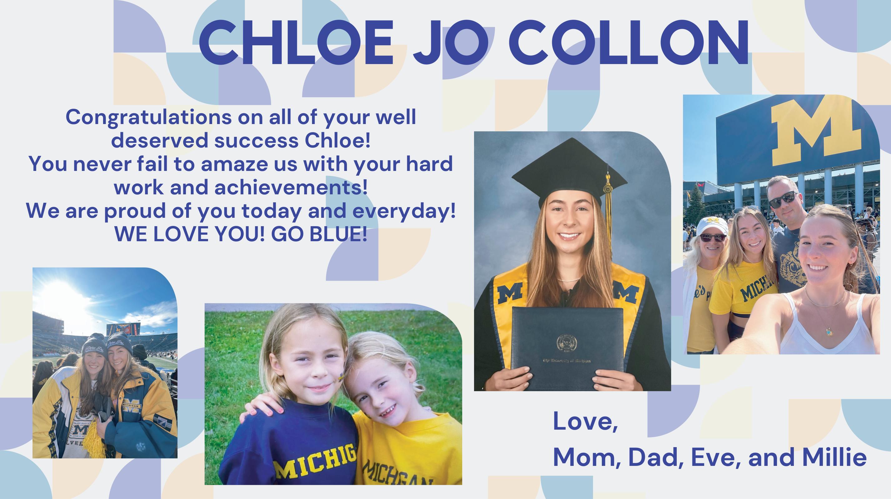 Congratulations to Eloise Essig and the Michigan class of 2024! Eloise, we are so proud of you! We love you!