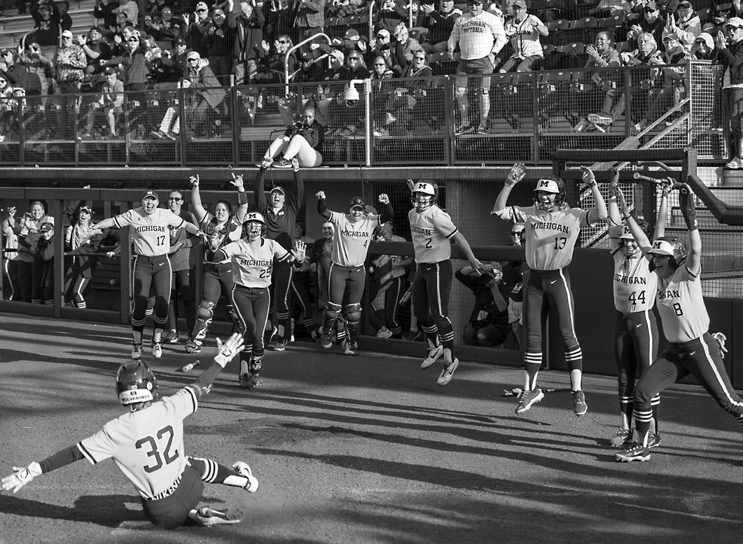 After a leadoff single from junior third baseman Maddie Erickson, senior shortstop Ella McVey sent a bouncing ball up the right field line. With a Scarlet Knight fielder unable to secure the ball, the ball continued rolling toward the back wall. Erickson and McVey were both reached home safely, McVey with her arms in the air in celebration. For the third time all game, the Wolverines had put themselves in position to score with simple hits before a long hit sent their runners across the plate.