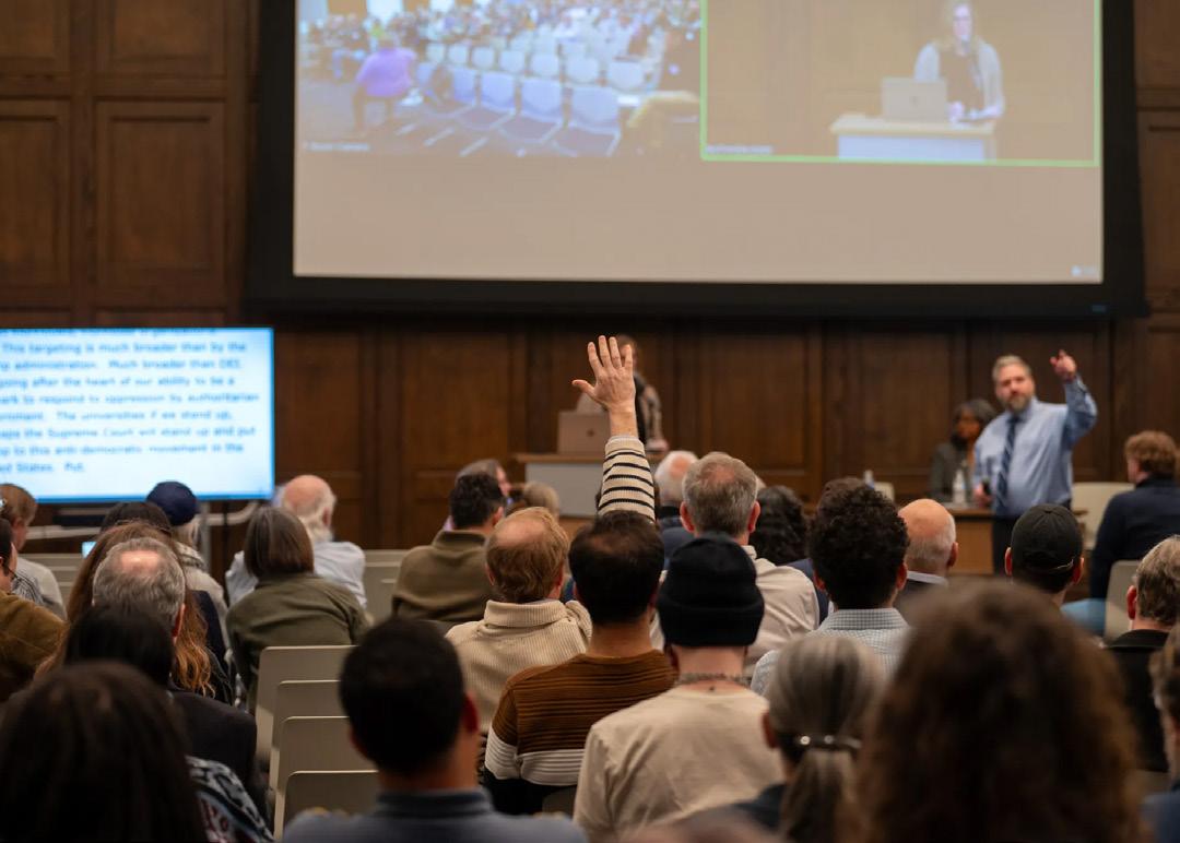 The University of Michigan Faculty Senate held a special meeting Thursday in the Alexander G. Ruthven Building to discuss joining the Big Ten mutual defense compact against President Donald Trump’s administration, urging the reinstatement of diversity, equity and inclusion initiatives and advocating for more protections for international students.