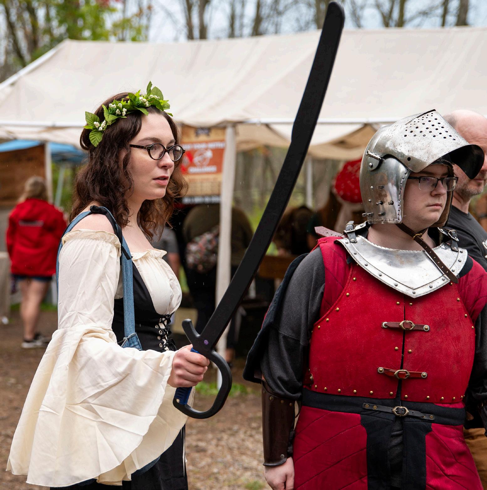 theater, history, mythology, costumes. But there was surprising depth and breadth to their answers, even within a single friend group. Aidan Johnson explained to me that it was a family practice; Johnson’s aunt is an American Sign Language interpreter and assisted in the Deaf weekends. I hadn’t even realized we were attending a Deaf weekend, but it was true; every staged fight had interpreters!